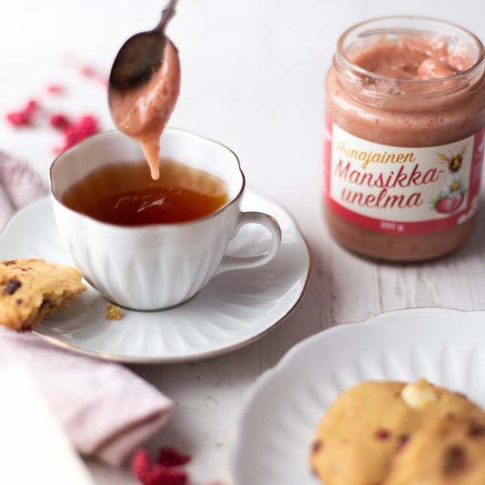 Mansikkakuohu oli juhlissa kaikkien mielestä todella hyvää, maistui aidolle mansikalle ja oli raikasta. Piristys hellepäivän keskelle.