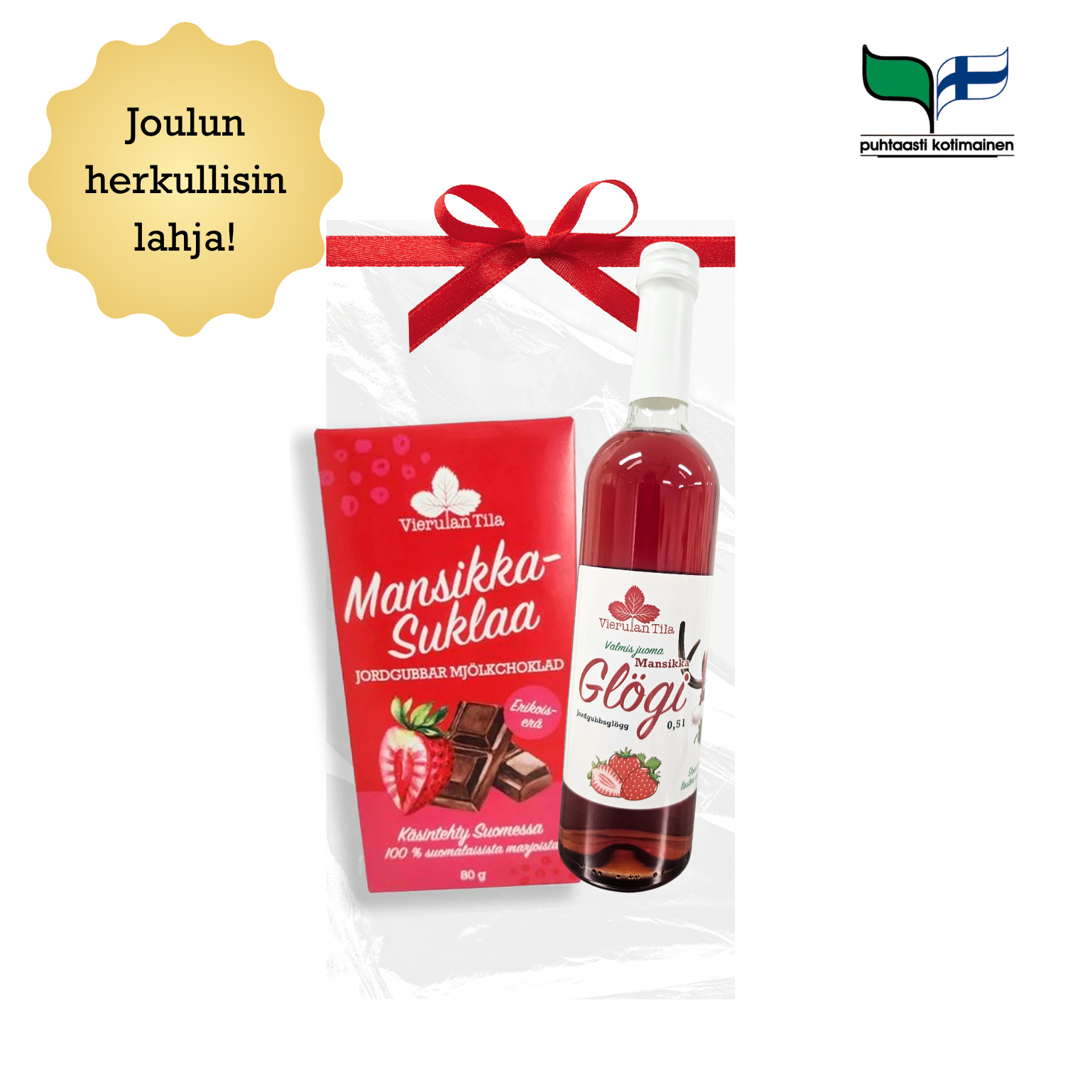 Vierulan mansikkaglögissä ja Suojärven suklaatilan käsitehdyssä marjasuklaassa maistuu joulu!